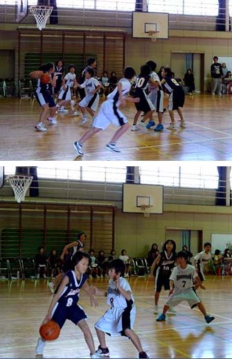 *写真はミニバスケットボールの練習試合のようすです。