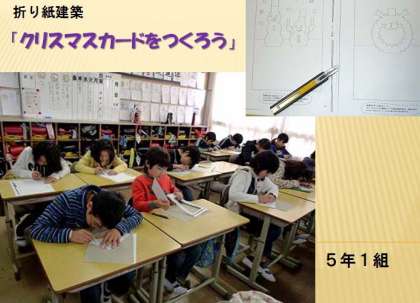 12月19日(月)の5時限目、5年1組は図工で「クリスマスカードづくり」を行いました。