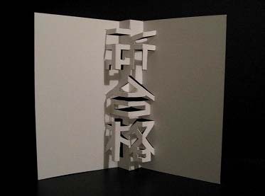 これは1980年代に「折り紙建築(Origamic Architecture)」で日本だけでなく世界的に有名になった(元)東京工業大学教授の茶谷正洋氏が考案したデザインがもとになっています。一枚の画用紙とカッターナイフさえあれば、歴史的建造物をはじめ幾何学模様、球体、文字が立体的に浮かび上がる茶谷氏の創造力に私も驚かされた一人で、当時はいろいろな刊行物を集めました。