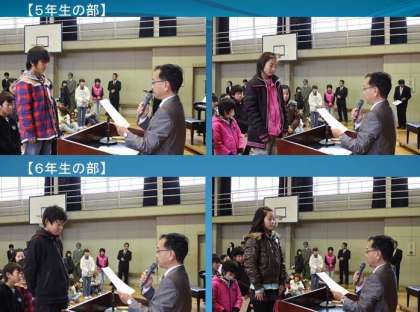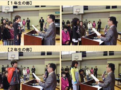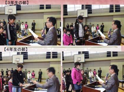 各学年の男子、女子それぞれの一位となった児童が、入賞者を代表して、浅井校長より表彰状を受け取りました。