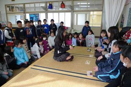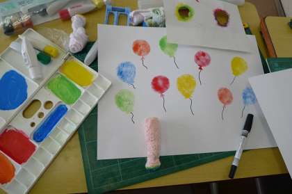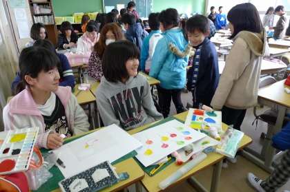 の 「美術クラブ」では、ステンシルによるかわいい絵を制作するところを見学することができました。(写真 上・中)