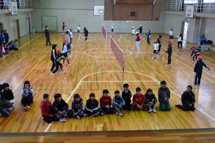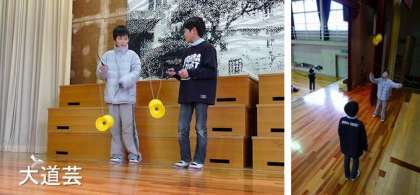 3年1組が最初に向かったのは体育館。体育館では「大道芸クラブ」と「バドミントンクラブ」が活動をしていました。