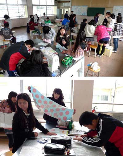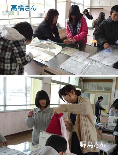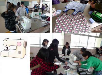 6年生は家庭科「伝えよう ありがとうの気持ち」という単元で、生活に役立つ布作品の制作をすすめています。