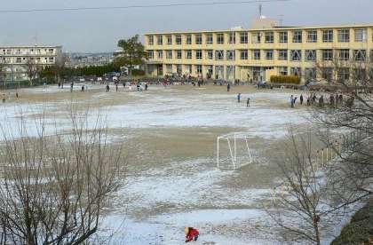 昨夜の寒波で運動場には、うっすらと積雪が見られました。(写真 上)