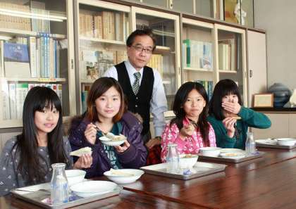 「いただきます」の前にウォーミングアップ(?)の名前をコールするゲームをやってからの会食です。(写真 2)