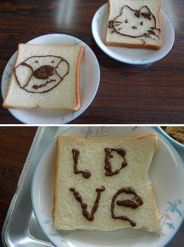 最後にスライスパンをキャンバスにした芸術作品(?)をご鑑賞ください。(写真 4・5:私の作品もありますが・・・)