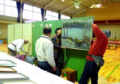 作品展の準備(公民館サークルのみなさん)
