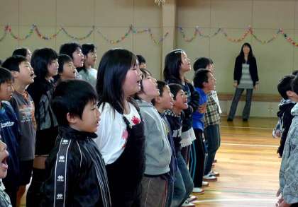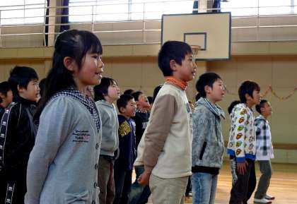 2時限目、体育館では、9日(金)に行われる「卒業生を送る会」の本番にむけて、4年生が魂のこもったリハーサルを行っていました。
