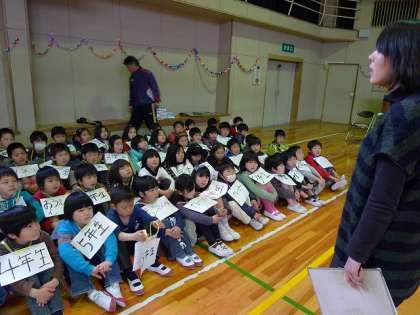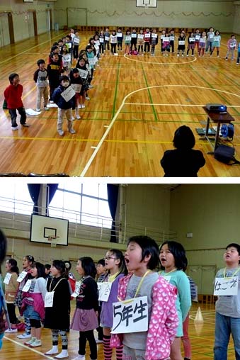 2年生は、小学校生活の思い出のシーンを歌や劇でふりかえります。この練習への集中力なら、当日は元気いっぱいの発表が見られることでしょう!