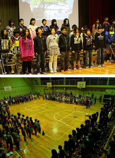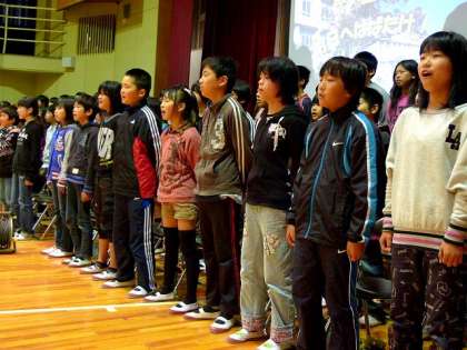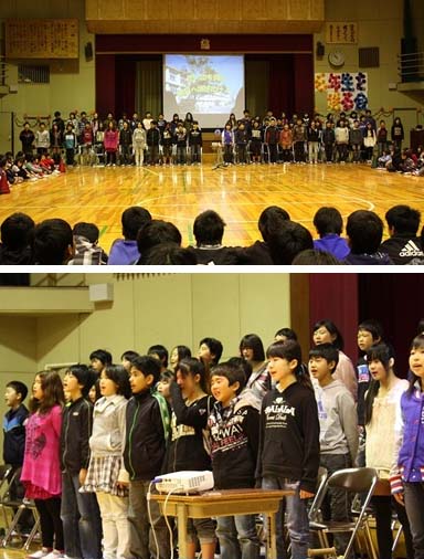 6年生は、在校生へのメッセージを述べ、「大切なもの」という歌をおかえしにプレゼントしました。