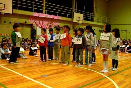 入学式の担任発表、2年生の「九九の練習」」に苦労した思い出、・・・6年生では運動会の応援団の再現などハイライトシーンの連続です。