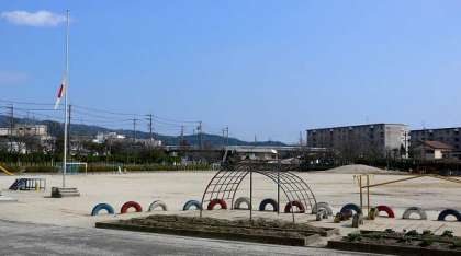 午後2時30分、いつもの日曜日とはちがって、八幡小学校の運動場には部活動を行う野球部員の姿もなく、とても静かです。