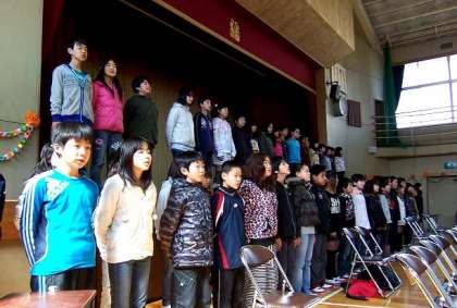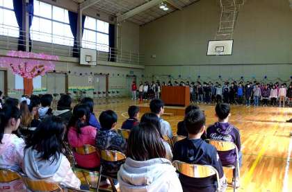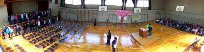 3月14日(水)の3時限目、体育館では、緊張感でぴ〜〜んと張り詰めた空気の中、5・6年生合同の卒業式練習が行われていました。