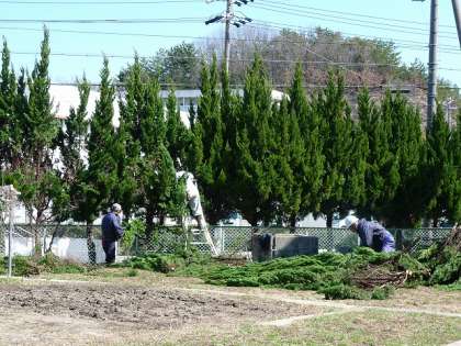 校庭の周囲にある樹木がどんどん剪定されて、散髪後のようにずいぶんさっぱりしてきました。