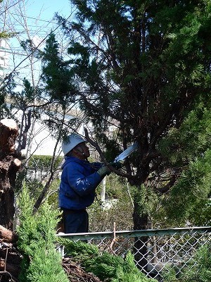 今週に入って、瀬戸市シルバー人材センターのみなさんによる樹木の剪定作業が行われています。(写真 1・2)