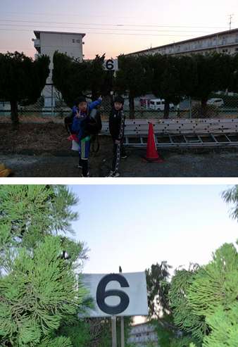 ちょうど部活動が終了した男の子にモデルになってもらって「6」の看板を指してもらいました。(写真 4)