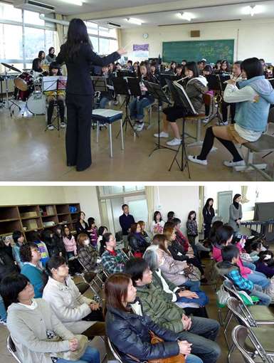 つづいて後半は音楽部員全員による演奏がつづき、ラストは、東日本被災地の復興応援ソングとして脚光をあびた「あとひとつ」(FUNKY Monkey Babys)でコンサートは幕を閉じました。