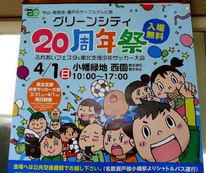グリーン・シティ・ケーブル・テレビ(GCTV)が開局20周年を迎えるのを記念して、4月1日にイベント(名古屋市:小幡緑地 西園)を企画しています。GCTVより、わが音楽部にその中のコンサートへの出演オファーがありまして、それをお受けすることにしました。(写真 一番 下)