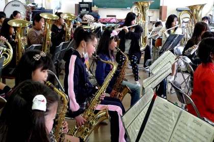 先日、めでたく小学校を卒業した6年生も「これが最後の演奏会」と、気合いを入れてリハーサルを行う姿が音楽室で見られました。