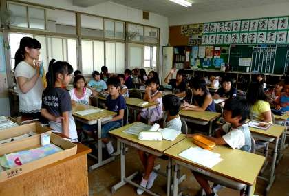 4年1組(担任:藤谷教諭)は「夏休みの思い出」を発表していました。2組(担任:大塚教諭)では、「2学期の目標」を一人ずつが発表していました。
