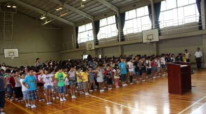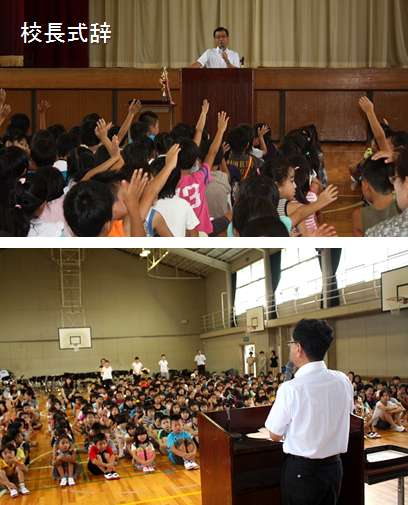 浅井校長は式辞の中で、ロンドンオリンピックで感動した場面や心に残った沢選手の言葉を紹介した後、「2学期は『なかよく、チャレンジ!』を合い言葉に生活しよう」と呼びかけました。