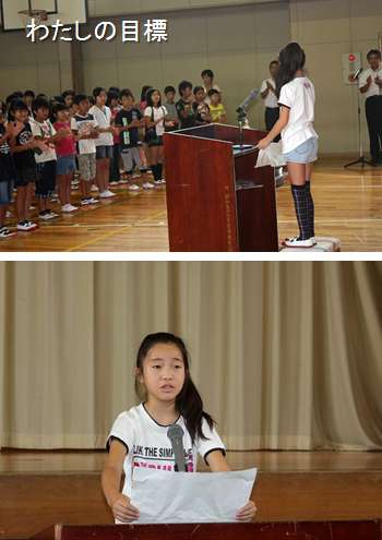 つづいて「わたしの目標」では、3年生児童を代表して井戸さん(1組)が2学期にがんばりたいことを堂々と発表しました。