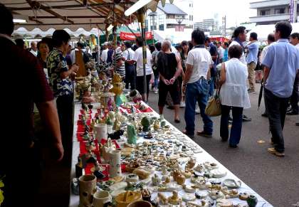 せっかく「せともの祭」に来たので記念に何かを・・・と思っていたら、「馬の目皿」が特別価格で販売されていたのを発見!さっそく購入しました。この馬の目の模様をフリーハンドで描くにはかなりの修行がいるのだとか・・(写真 上・中)