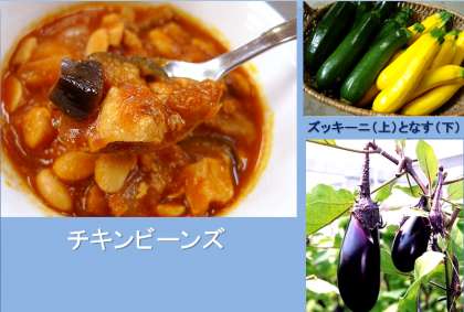 今日のチキンビーンズには、夏が旬の野菜である「ズッキーニ」と「なす」が入っていました。