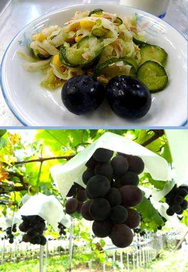 デザートは、「ぶどうの王様・巨峰」が登場しました。糖度が高く、みずみずしい口あたりで美味しくいただきました。