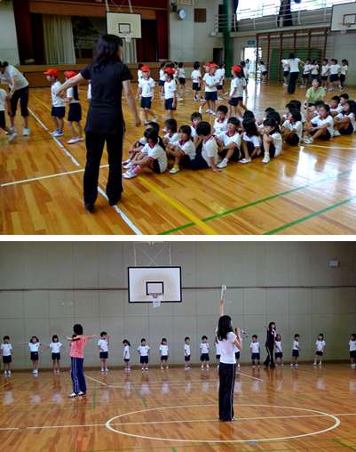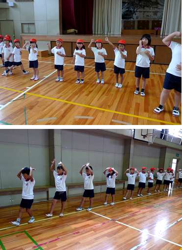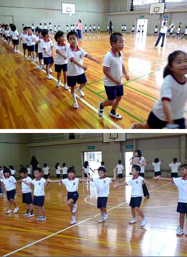 今日は、直線の列から円形の列へとチェンジする隊形移動をおぼえました。