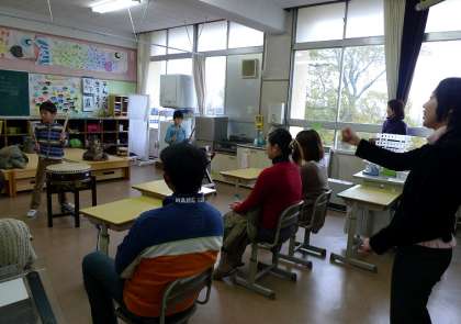 生活発表会では和太鼓の発表をしました。すごろく大会では、担任の笠原教諭をはじめ、支援員の上村さん、参観してくださった保護者のみなさんもまじえてゲームを楽しみました。