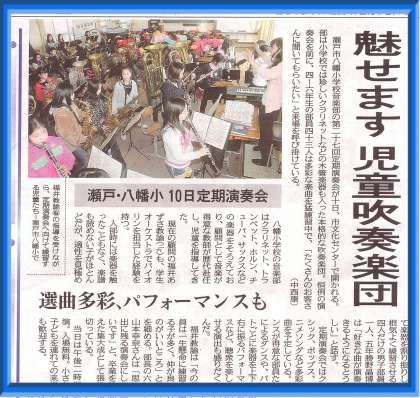 第27回定期演奏会をつぎの日曜日にひかえた八幡小学校・音楽部の活動が7日付の中日新聞(なごや東版)で紹介されました。