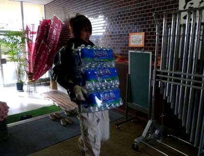 2月12日(火)の午前中、業者さんによって災害用の飲料水が八幡小学校にも届けられました。飲料水はこの後、学校内の冷暗所に保管する予定です。