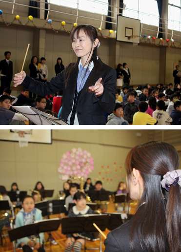 恒例となりました式典の行われる日の体育館への入場BGMは、今年度も音楽部が担当します。演奏を指揮するのは、今年度より音楽部の顧問リーダーとなった加藤教諭です。