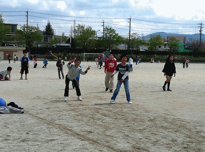 ブランコで遊ぶ1年生の女の子と相手しているのは福留教務主任です。一輪車の連結技にチャレンジしているのは5年生。