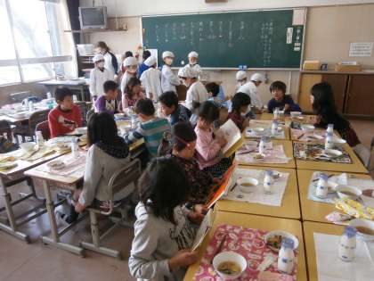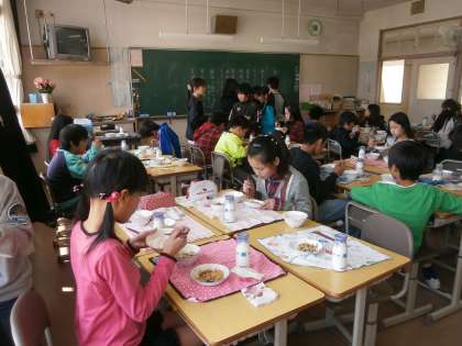 どのクラスも落ち着いて準備をし、久しぶりの給食を楽しんでいました。