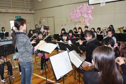 最後に、音楽部の演奏で八幡小学校・校歌をみんなで歌いました。転任職員のみなさんにとっては、歌い納め(?)なのかもしれません・・・