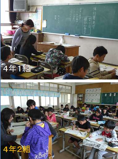 消防署見学に出かけた4年生(1組・2組)は、午後から「消防署見学新聞づくり」に取り組みました。