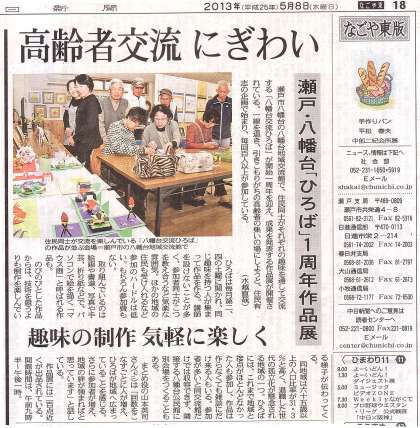 5月8日付で発行された中日新聞の「なごや東版」で、“八幡台交流ひろば”の発足1周年を記念した作品のようすが紹介されていました。