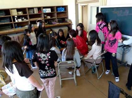 午後4時50分ジャストになると、音楽室にいる部員は練習の手をとめて、取材スタートです。