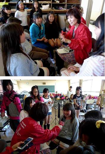 パーソナリティーの高橋ひろこさんが、音楽部の部員をはじめ顧問の福井教諭に活動のようすなどをインタビューしてくださいました。