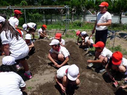 学校ではいろいろな学年が、夏から秋にかけての開花や収穫をねがって、種をまいたり苗を植えたりする活動に取り組み始めました。