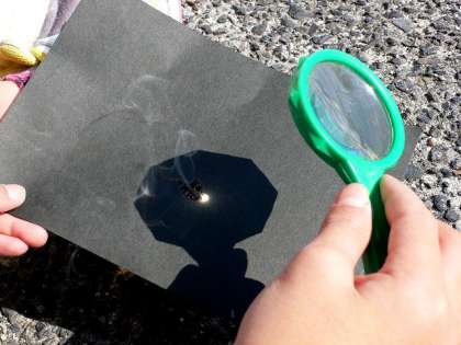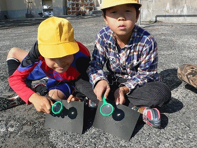 今日は、虫めがねで日光を集める活動をしていたのです。