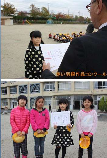 「赤い羽根児童生徒作品コンクール」は5名が優秀賞。代表で横道さん(4年)が授与されました。