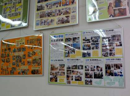 わが八幡小学校のたんぽぽ組の活動を紹介したパネルや子どもたちの立体作品も展示されていましたよ。