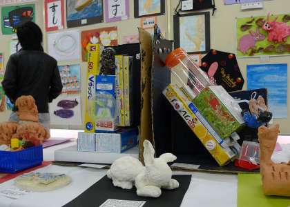 市内小中学校の特別支援学級、さくらんぼ学園の子どもたちの作品が一堂に会して展示されていました。