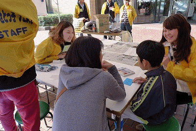 藤谷教諭は 南山大学 Oh! Share の学生さんと共同して「世界のゲームで遊ぼう」をテーマにしたブースを運営していました。海外からの学生さんも多い大学の特色をいかした企画が売りのブースのようです。ここでは、いろいろ国際色豊かな体験ができそうです。