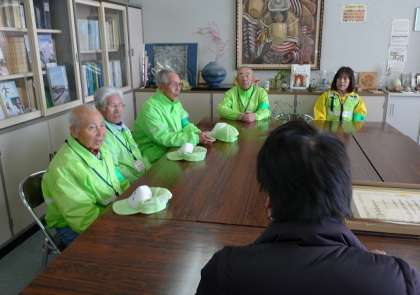 ちょっぴり緊張気味のボランティアさんたちは、記者の質問に対してひとつずつ丁寧に答えてみえました。