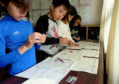 子どもたちは、まず冒険に出発する前に、DVD教材を視聴しました。そこに登場するキャラクターが話した言葉が印象的でした。