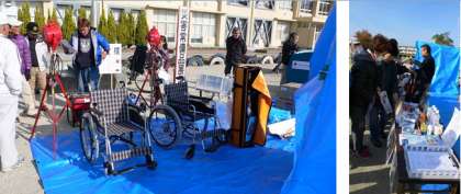 災害常備品の展示コーナーです。非常持ち出しグッズも並べられていました。